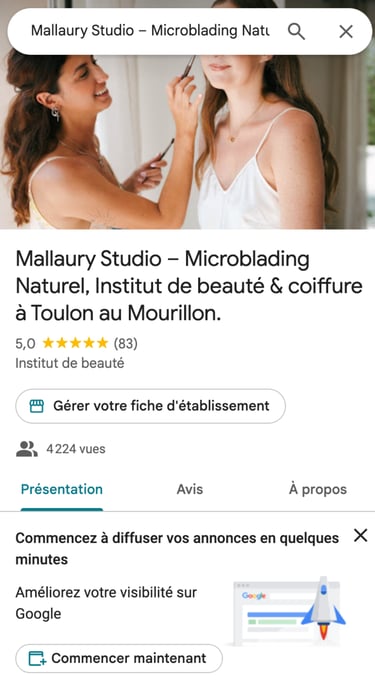 Des centaines de clients cherchent vos services chaque jour sur Google dans les Bouches-du-Rhône. Avec une fiche Google my Business bien gérée, vous apparaissez en premier à Marseille, Aix-en-Provence et dans toute la région PACA : plus d'appels, plus de rendez-vous, plus de clients, sans pub payante.